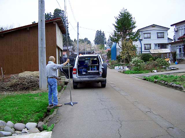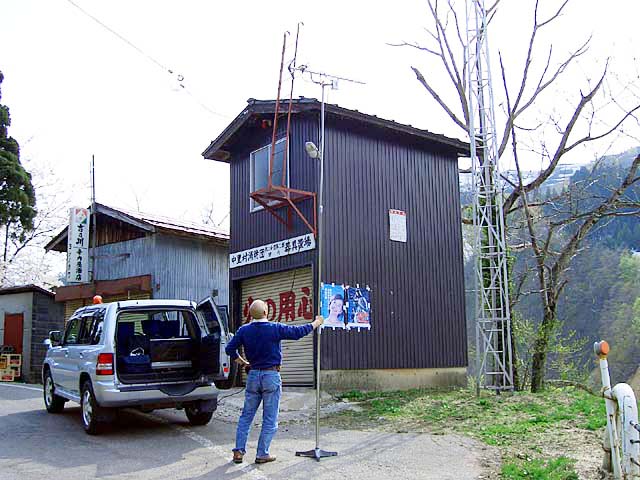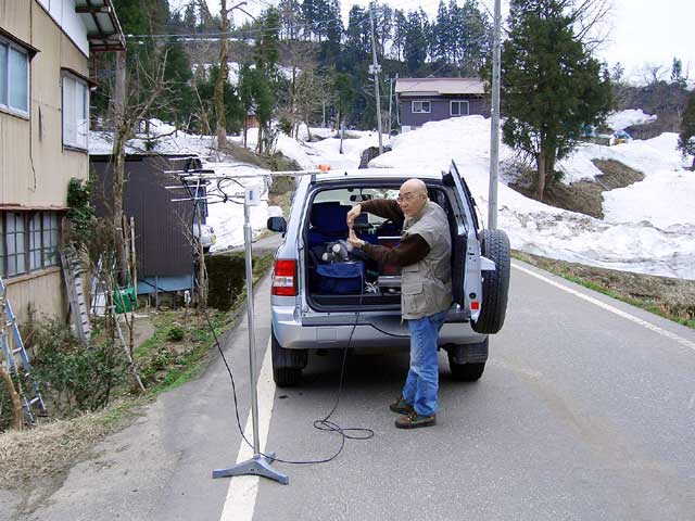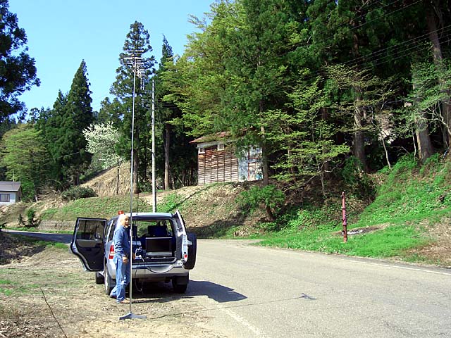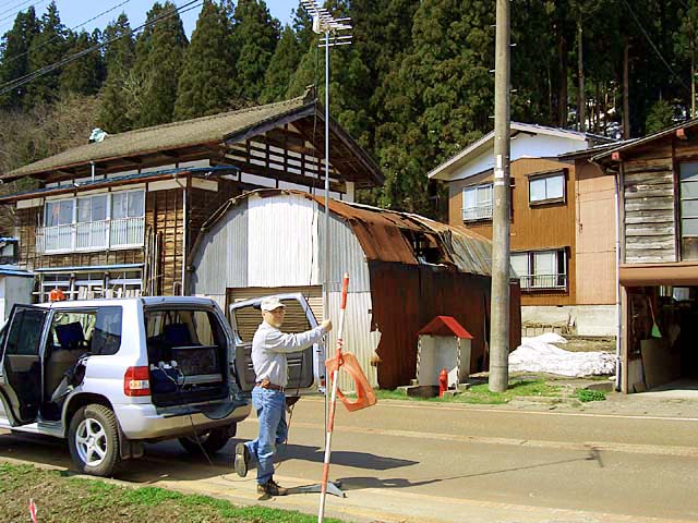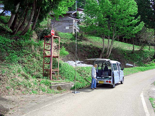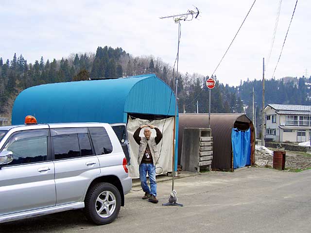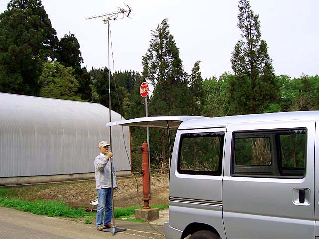 12 松之山湯山 集会所付近 共同アンテナ - 3 ゴースト強 3.0m 不安定、弥彦 2006.05.05